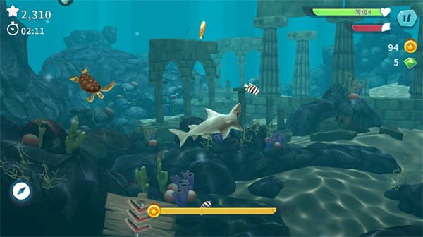 《饥饿鲨进化》的操作非常简单,玩家只需通过滑动屏幕来控制鲨鱼的移动和攻击。这种简单的操作方式使得游戏非常容易上手,适合各个年龄段的玩家。