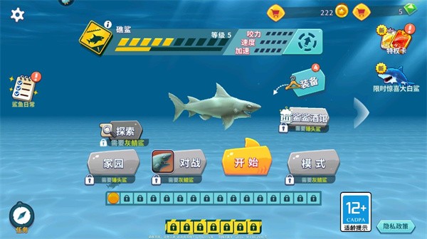 9、在这里玩家可以领取丰厚的奖励,不仅可以对鲨鱼进行装装备,还可以解锁其他模式,除此之外,游戏中还有很多玩法等着玩家们自行下载体验。