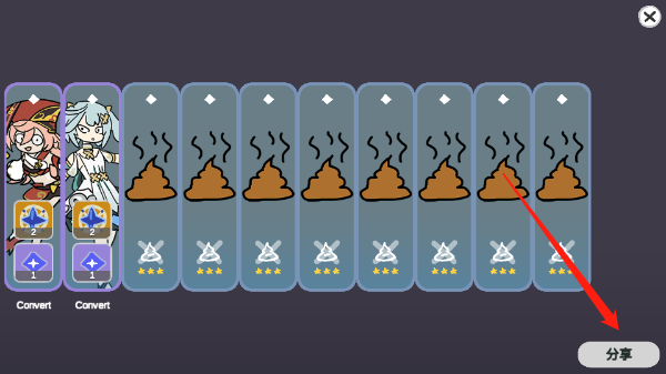2、作为同人二创手游,游戏画风十分鬼畜有趣,抽卡后点击右下角还可生成图片分享给好友