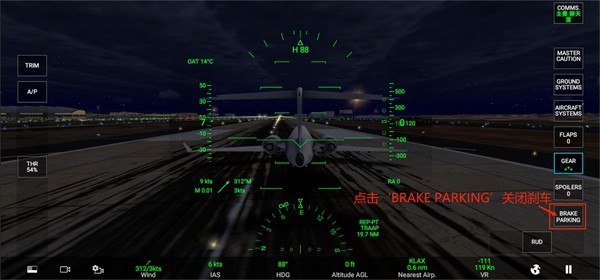 10、按住‘FLAPS-襟翼’向上滑动至0,无挡板回缩