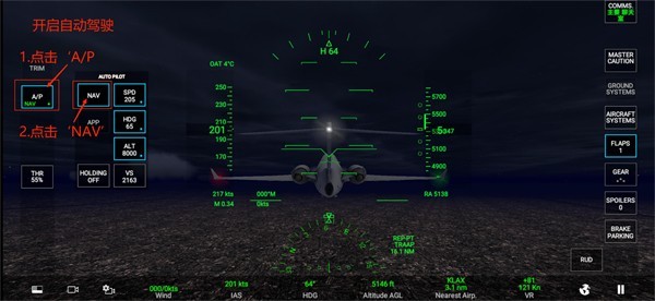 9、点击‘A/P’,再点击‘NAV’,即可开启自动驾驶