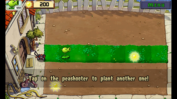 3、进到游戏内,先点击豌豆射手种在草地上。
