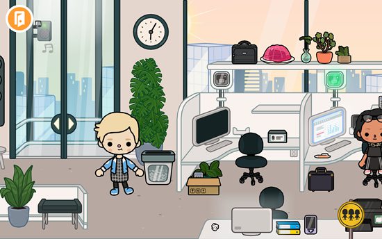2、随便点击一个大楼即可进入其中,例如我们选择商业用楼,进来后发现里面是一间办公室,可以看到很多办公用品,还有很多工作的人员。