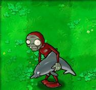 海豚僵尸骑着海豚来突破池塘防线的薄弱之处。