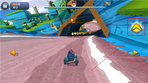1、进入愤怒的小鸟卡丁车后,玩家们需要拉动小鸟来开始起步。
