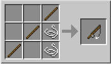 5、钓鱼竿。钓鱼竿的制作材料非常简单,只需要3根木棒以及2个蛛丝。用它可以获得各种鱼类、附魔书和其他杂物。