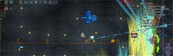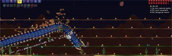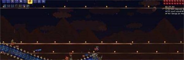 4、在地狱场景中,我们需要召唤肉山进行战斗,肉山的整体难度很大,我们一定要提前建立好战斗平台,并且可以利用爱心雕像提前放置一些回血道具。