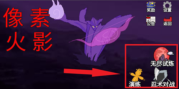 2、然后玩家就可以在无尽、演练、忍术三个对战模式中选择自己喜欢的开始对战啦!