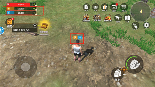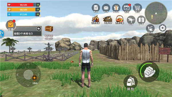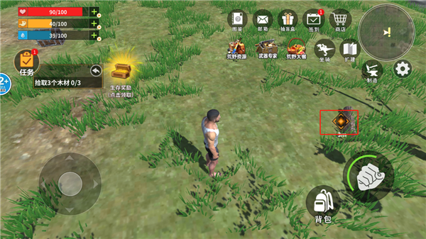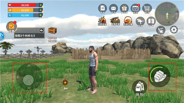 3、左边控制角色的方向,右边攻击,点击背包玩家可以查看自己所获得的物资。