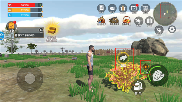 1、收集木材、岩石、植物等资源,制作工具和装备,建造庇护所,提高生存能力。