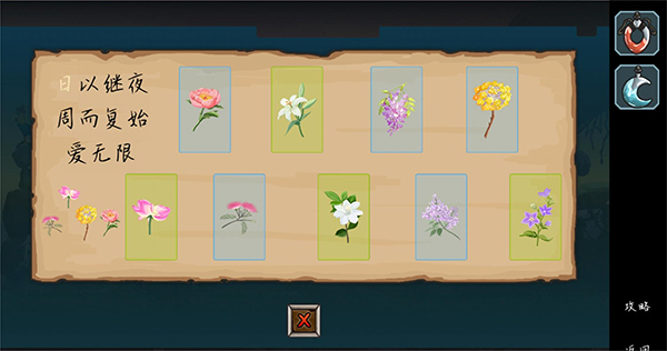 8、观察花图左侧图案,在白天和黑夜并不相同,将白天显示的花放到黄色格子里,黑夜显示的花放到蓝色格子里,即可获得种子。