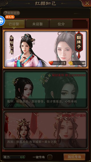 3、多位绝色天香的红颜知己可以选择,点击翻牌子,宠幸平阳公主,与美人共度春宵,提高亲密度;