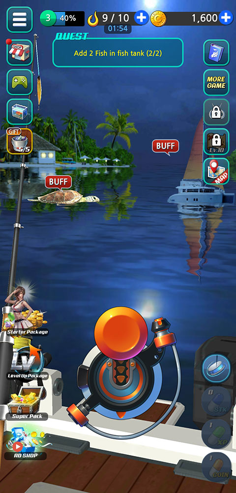 钓鱼胡克是一款极具挑战性的全新竖版钓鱼模拟小游戏,高度仿真的游戏钓鱼画面,致力于带给玩家最真实的钓鱼体验。在最新的钓鱼胡克(FishingHook)中文手机版游戏里,采用了十分逼真写实的3D场景画面,为玩家真实模拟构建了一个个不同的钓鱼场。作为一名钓鱼爱好者,玩家需要凭借自己的技术,去尽情享受钓鱼的无限乐趣。