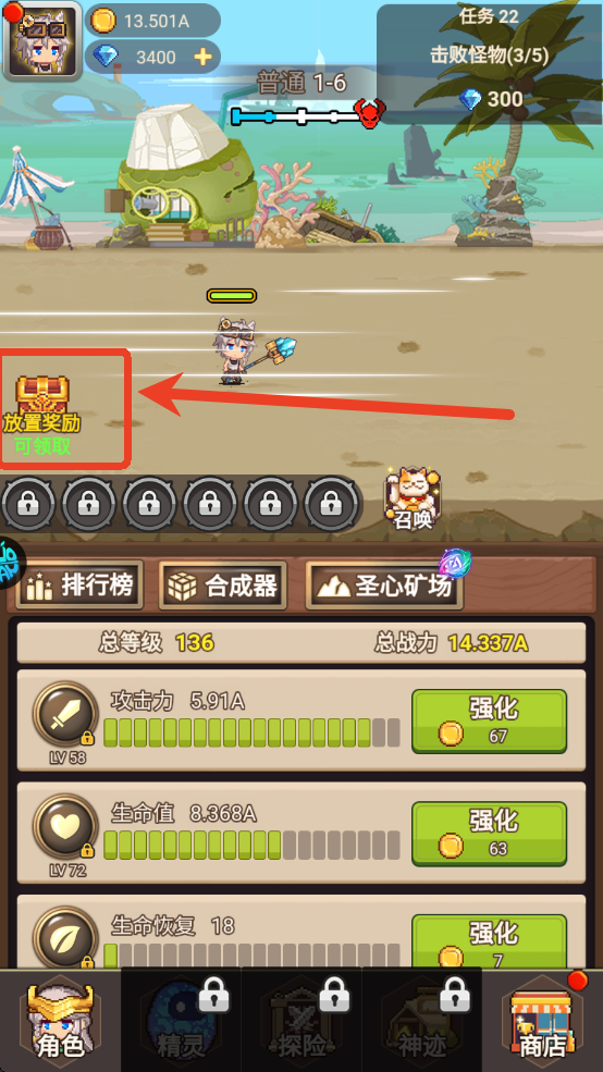2、独特的关卡制即时放置挂机的方式,在忙碌时也能轻松享受游戏乐趣。