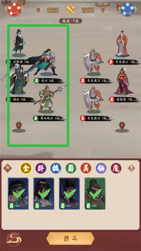 不同的站位,不同的技能搭配,跨战力挑战,战略战术最重要。
