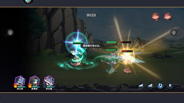游戏结合了自动战斗与手动操作,玩家可以选择手动释放技能来把握战斗节奏,也能开启自动战斗让游戏自动进行回合对战。