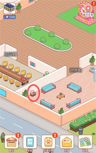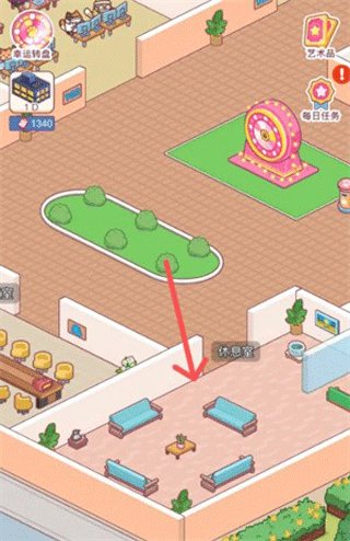 1、在本站下载安装搬砖之王游戏,打开进入游戏主界面,找到休息室,点击任何一个区域进入。