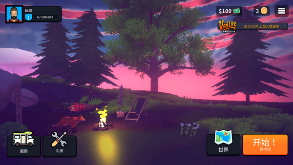 1、在本站下载安装房车生活模拟器游戏,打开进入游戏,点击右侧start开始游戏;