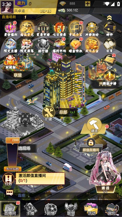 2、完成相应的任务后就可以领取专属主播了,然后通过不断扩建、宣传、装潢来提升人气,同时还需要不断地提升主播等级和星级;