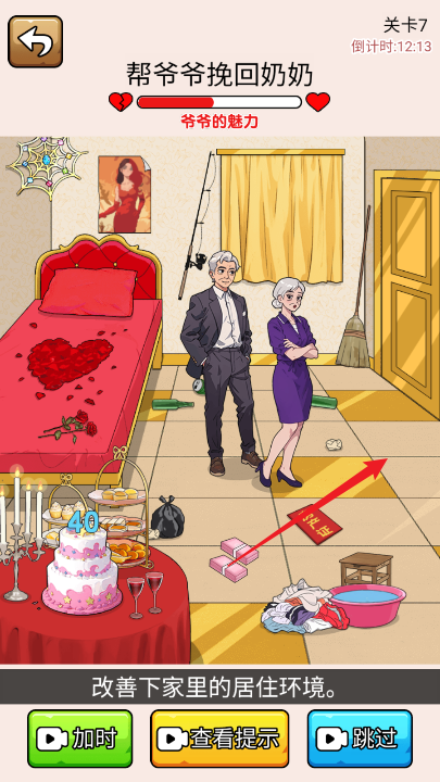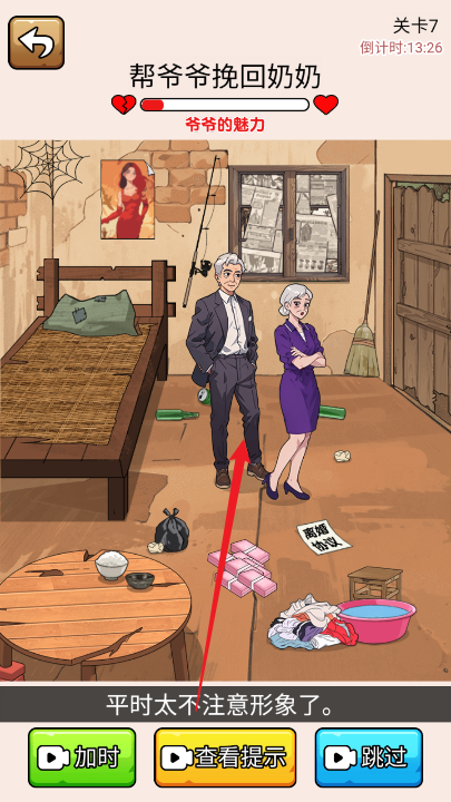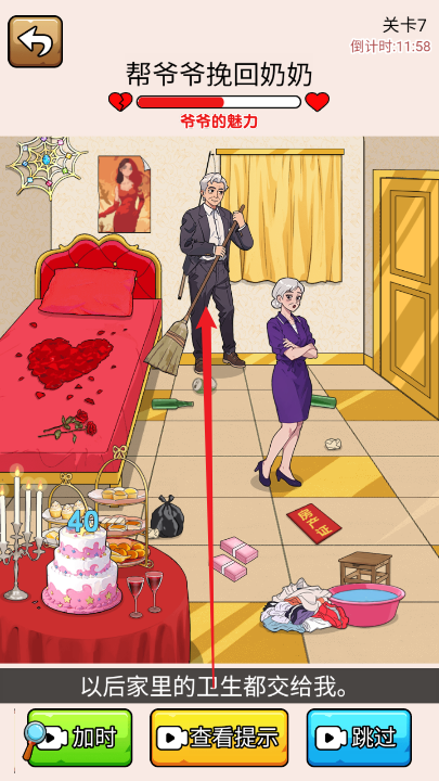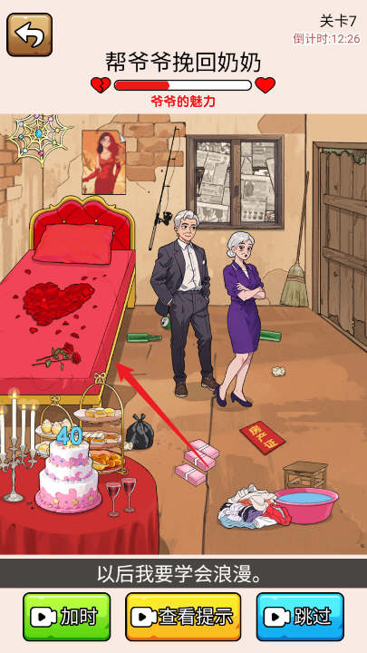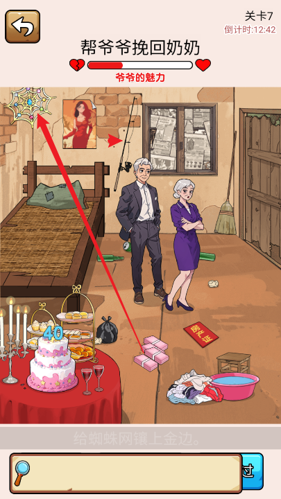游戏中帮爷爷挽回奶奶通关这关是最有趣也相对较难的,以下就是这关卡的攻略