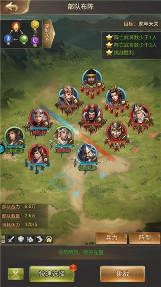 攻城掠地游戏创新性地将内政+军事+计策等玩法元素完美结合在一起,身为主公的你,需要根据战局,实时调整军队布局,并进行合理地排兵布阵,充分发挥每个武将的最强战力。