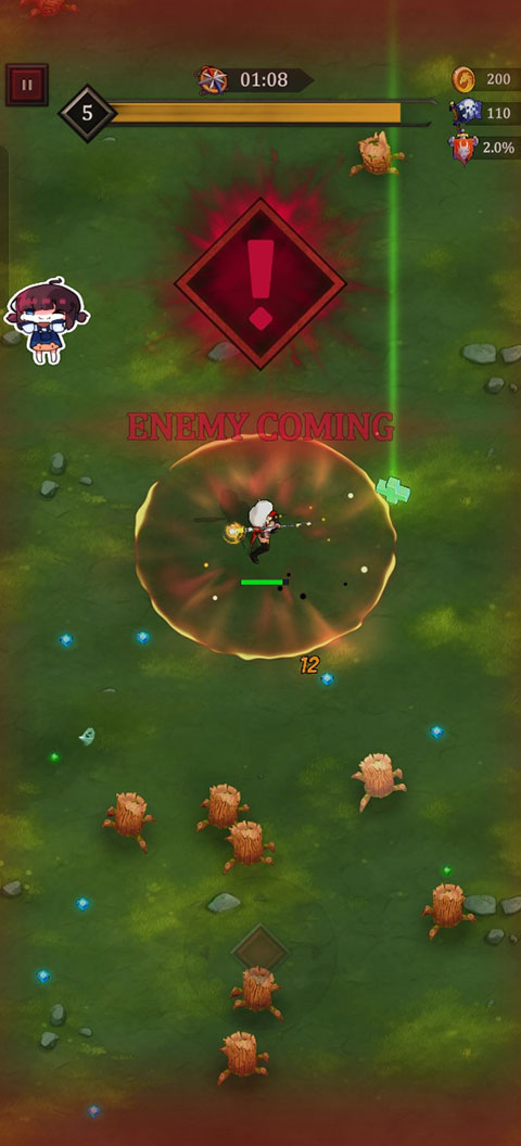 -通过滑动屏幕控制角色移动并自动攻击,支持快速清理大量敌人,体验“一夫当关”的战斗快感。