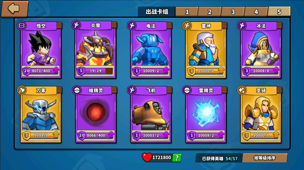 悟空、冰法、暗精灵、飞机、炎魔、刀客、雷神电法、圣骑、雷精灵。