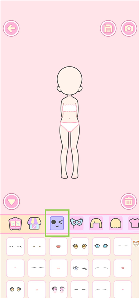 3、选择空白形象,选择喜爱的眼睛、嘴巴等,为芭比设计五官。