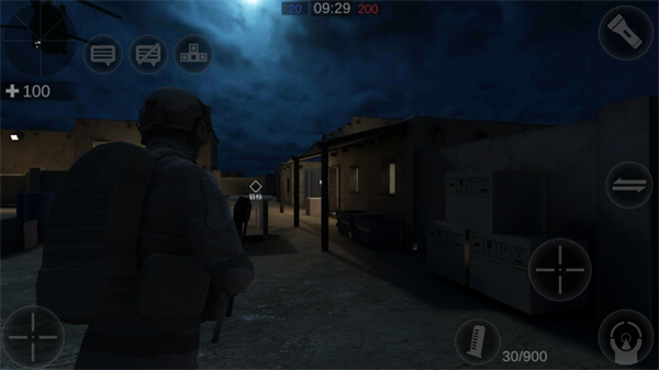5、进入游戏,左边可以控制人物移动,右边可以进行射击,右上方也可以开启手电筒。