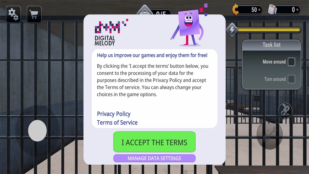 1、在本站下载安装越狱模拟器中文版游戏,打开进入游戏后点击i accept the termes