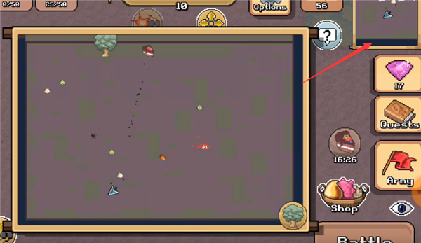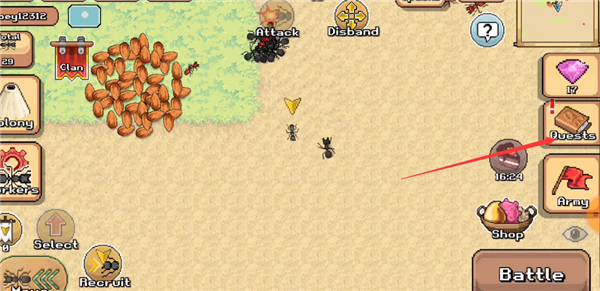 4、移动控制其他的蚂蚁去攻击其他的动物,需点击下方的battle,这里还可以查看血量;