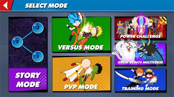 全明星英雄混沌战争是一款十分热血精彩的横版动作类闯关小游戏,采用了简约的二次元卡通画风,以火柴人的形象,为玩家绘制了诸多你所熟悉的动漫角色。在最新的全明星英雄混沌战争官方手机版游戏里,还提供了多种战斗竞技模式,玩家可以自由选择挑战。同时,游戏里的每一个火柴人角色都拥有不同战斗技能,需要玩家熟练掌握。
