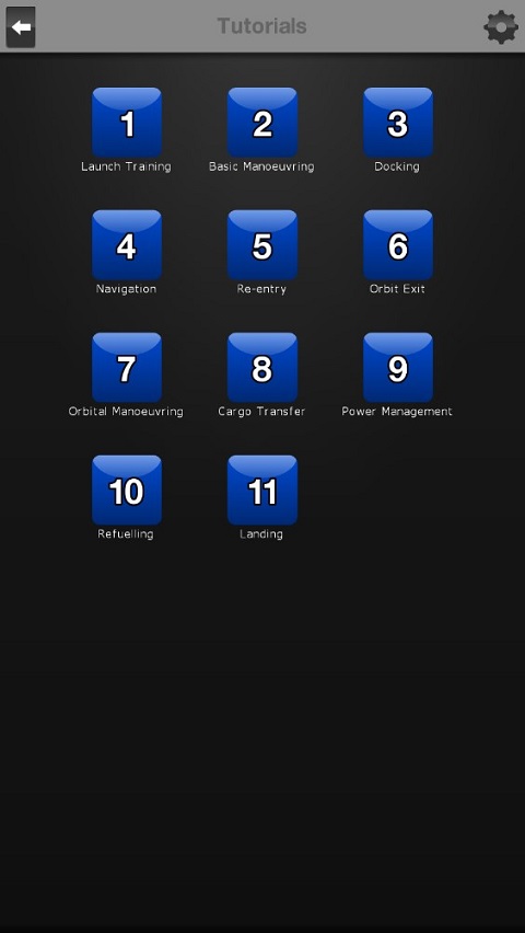 打开教程,依次的顺序包括发射训练、基本操作、停靠码头、航行、重返、轨道出口、轨道手动、货物转运、电源管理、加油和着陆。
