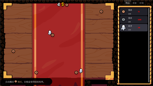 2、不断点击硬币来获得更多收益,点击右侧的物品可以解锁助手和更多的硬币。