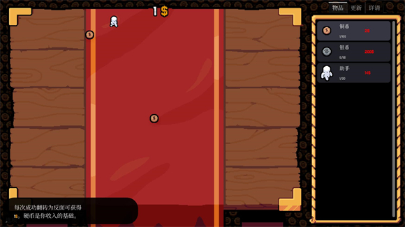 1、进入游戏,玩家可以击硬币来将其翻转,如果是正面就可以获得一金币。