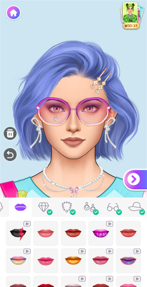 1、游戏内拥有海量化妆品,从眼影到口红、腮红,可以随心搭配各种妆容风格。