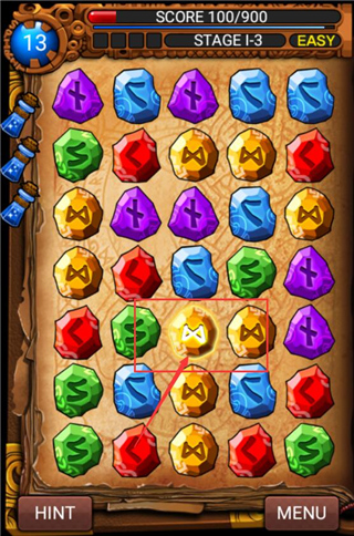 区别于以往的 “三消” 游戏,RuneMaster Puzzle 是四连消除。将同色的符文连成四个(或以上),横列竖列斜列都可,就会听到具有很强听觉冲击力的 “啪啪” 符文破碎声!笑~
