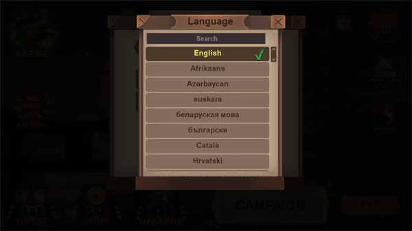 1、在本站下载安装忍者战士2游戏,打开进入游戏内是可以调节语言选项的,目前不支持中文,需要等后期更新,但不影响游玩。