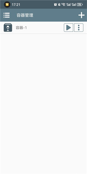 1、启动游戏,点击右上角“+”图标来创建容器