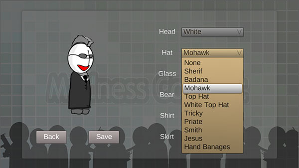 2、选择右侧的head、hat、glass、shirt等外观选项,自定义发型、眼镜、肤色以及衣服,完成后可以点击Save保存。
