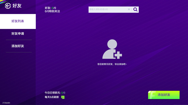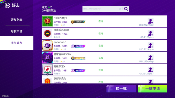 2、玩家可选择通过球队名和UID来添加好友。