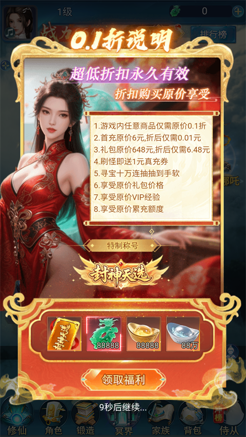8、【少年封神】全场充值永久0.1折,648元仅需6.48