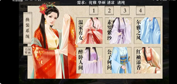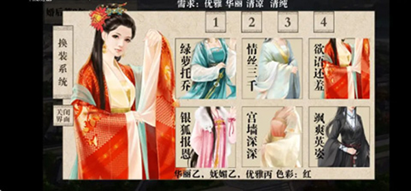 2、包含个人属性(容貌、才情、德行)、丈夫好感、子女培养等养成维度,不同选择影响剧情走向。