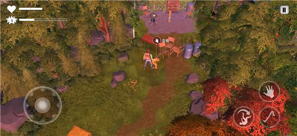 6、来到火堆边上,点燃火焰,然后火堆上就会出现【营地】,进入营地。