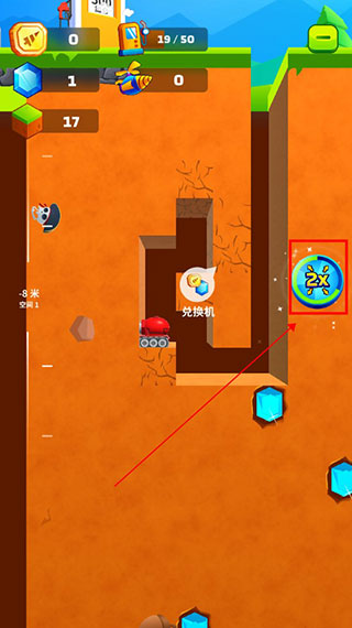 2、进入游戏后,拖动挖矿钻地机向下移动即可;