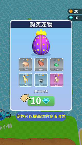 6、另外玩家在游戏中还有机会挖到稀有的钻石,钻石可以用来购买宠物,提高兑换金币的汇率