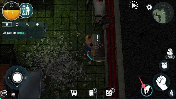 4、继续前进后,点击屏幕右下方的“拳头”徒手攻击,可以很轻松战胜丧鼠。