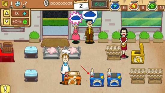 2、前期尽量使用2倍甚至3倍速度(不是药水瓶子,是左上角那个时间加速的),偶试过了,即使偶尔有脑袋短路,气走一两个客人,可是营业额也要高些,况且节奏快了也要刺激得多。