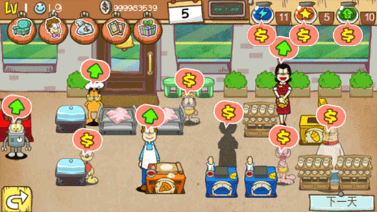 2、经营餐厅生意时收集你最喜欢的加菲猫卡片,你是否能集齐全部卡片呢。