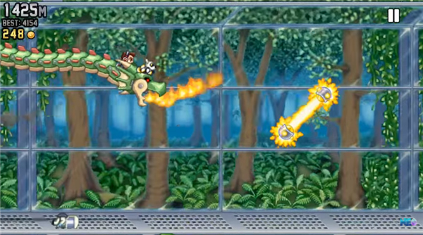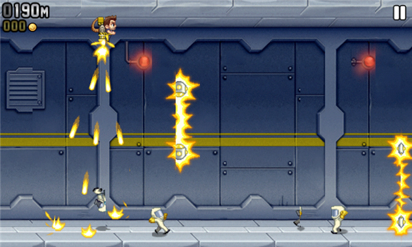 3、优点:这样做既可以收集最多的金币,又可以有效避开电火链。因为电火链会出现在屏幕的任何位置,如果Barry飞在顶空或者在陆地奔跑,他可以改变的位置就很小,这样遇到前方电火链来不及起飞或下落。